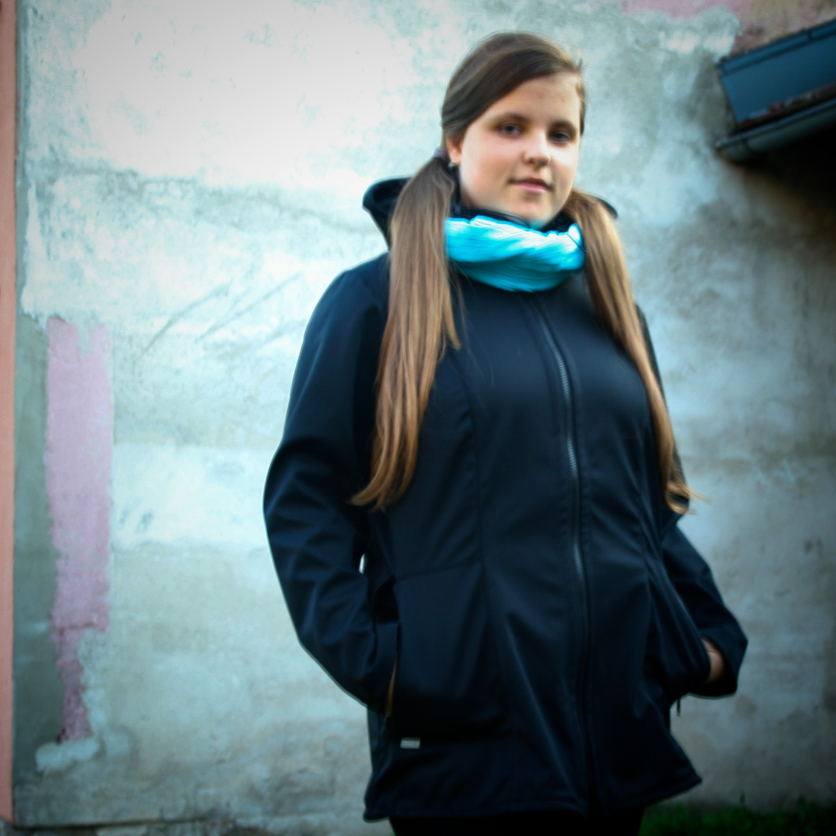 Softshellová  bunda s odepínací kapucí.